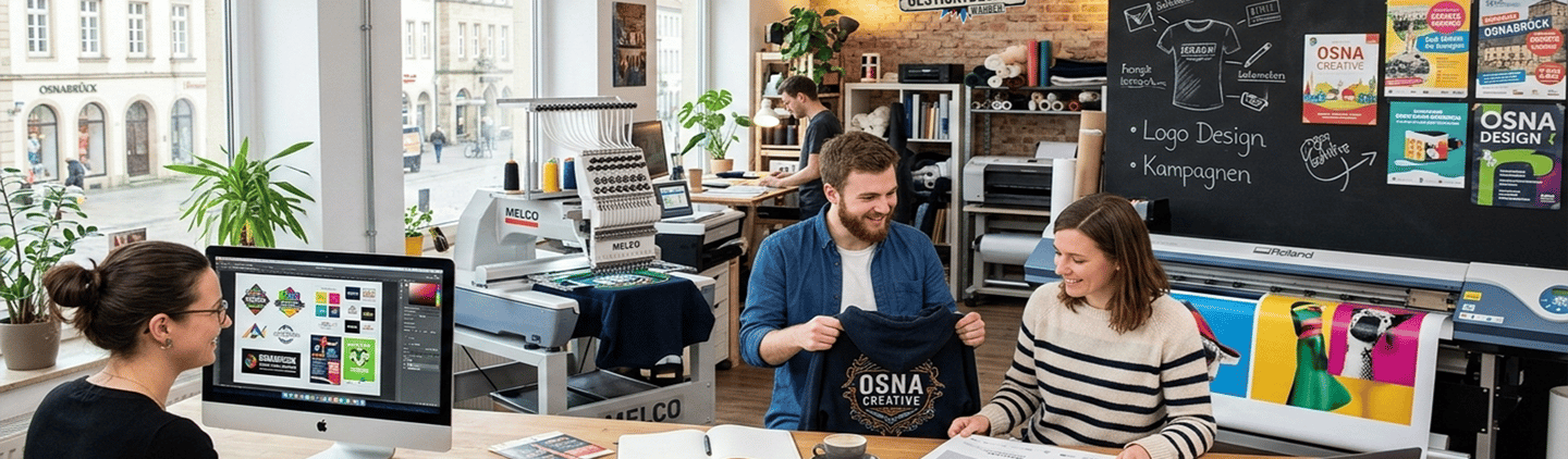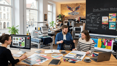 "Ihr Partner für professionelle Designs: Druck, Stickerei & Werbeagentur."
