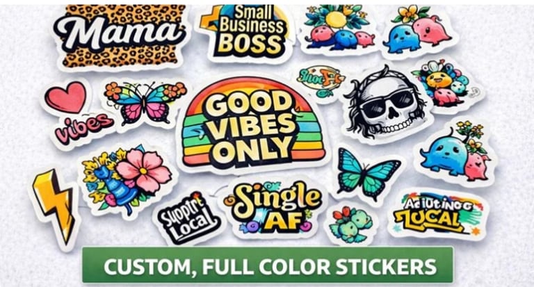 Mit UV-DTF Stickern in Freigröße von PrintPunk können Sie jedes Motiv genau so umsetzen, wie Sie es möchten – ohne Einschränkungen bei Größe oder Form.